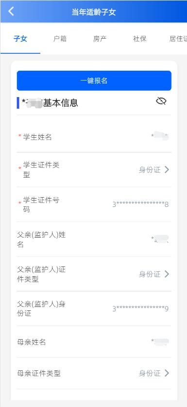 ②可通过切换上方“子女”“户籍”“房产”“社保”“居住证”查看相应信息