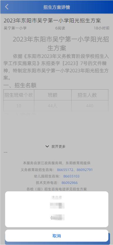 操作说明:①点击上方可切换查看不同学段的招生方案