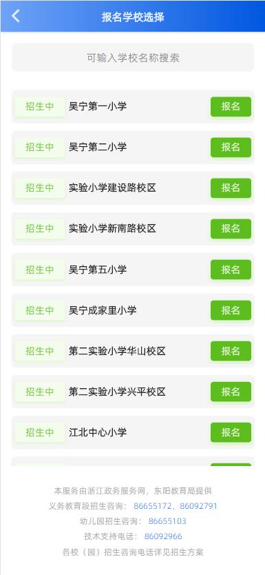 ②在页面上方搜索框中输入“东阳新生报名”,搜索到应用