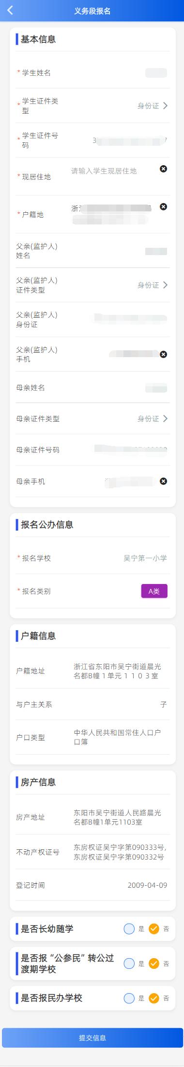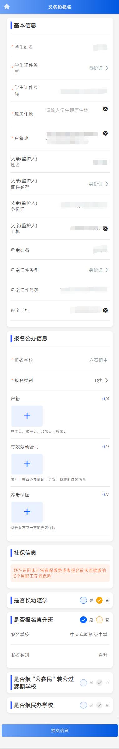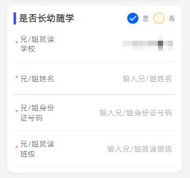 说明:①是否长幼随学点击“是”,跳出填写信息页面