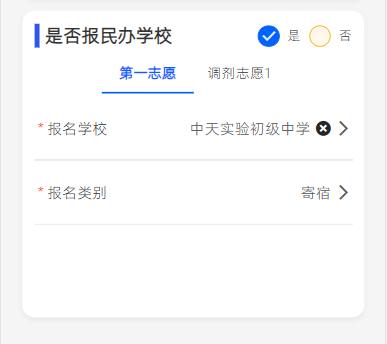 操作说明:非随迁子女报名民办学校可选择两个志愿;随迁子女报名民办学校可选择三个志愿。