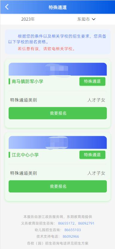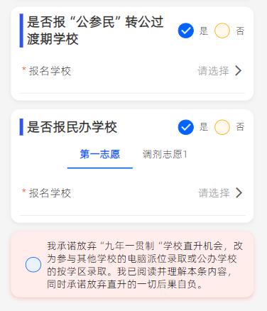 说明:放弃直升可选择民转公和民办学校,需要勾选承诺放弃8.特殊通道报名