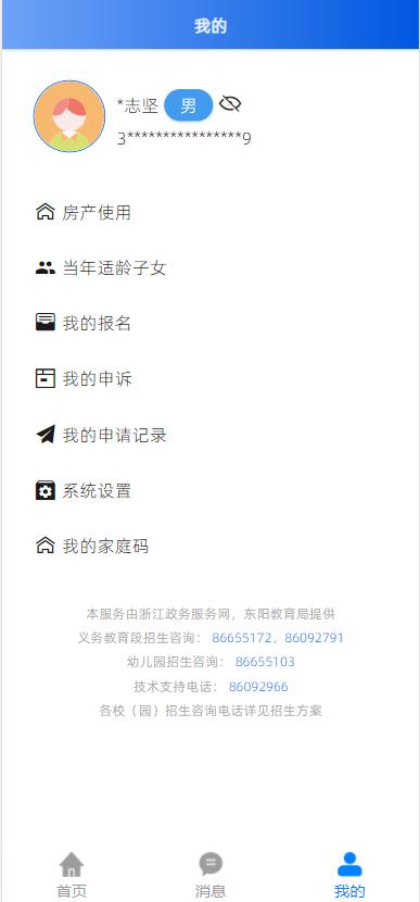 1.点击东阳新生报名页面中右下角“我的”—我的报名
