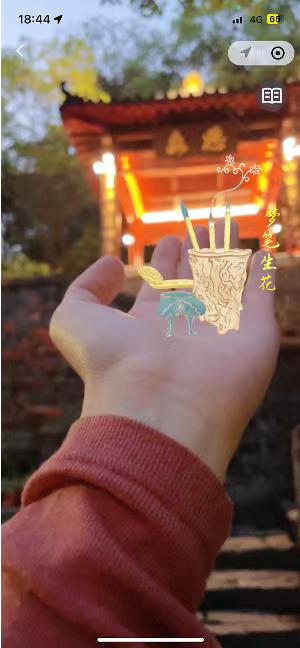 下一站文远亭让人们仿佛走进了明清小说呈现的时光中。南京曾是明清时期小说创作的中心和出版中心,《红楼梦》《儒林外史》等名著皆与南京息息相关。明代出版家胡正言在鸡笼山麓建十竹斋,编刊了《十竹斋笺谱》《十竹斋画谱》等印刷技艺巅峰之作。这里可利用AR识图功能,在移步换景间与十竹斋笺谱的数字形象“凤子”合影。