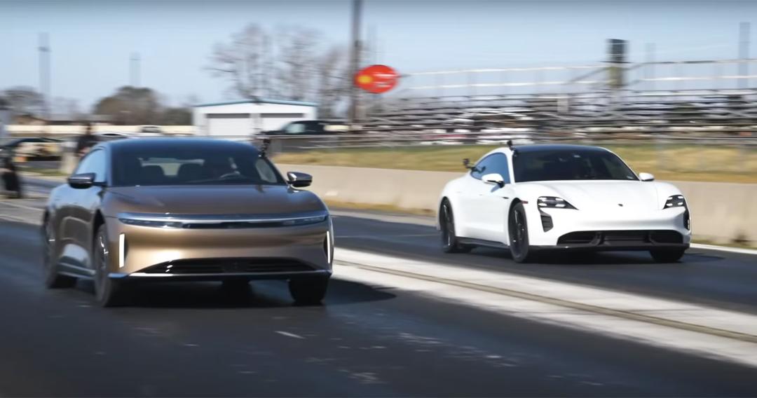 曾经也有不信邪的外媒把 Lucid Air 和保时捷 Taycan turbo S 放一起做过加速测试。结果就是。。力大飞砖。。