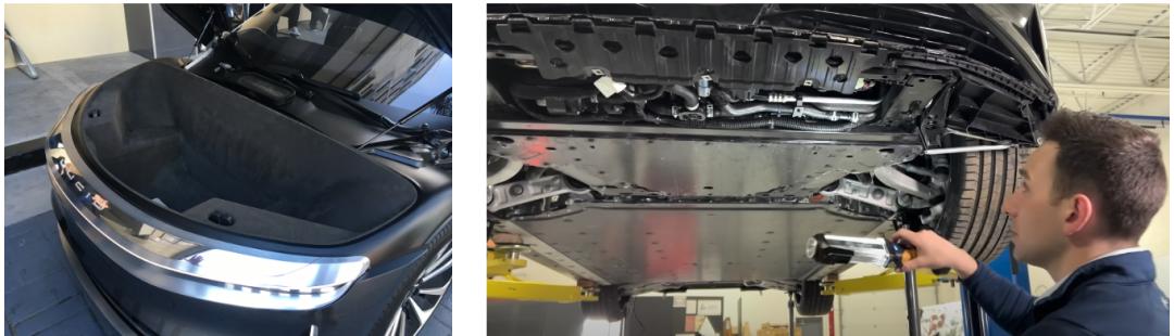 而为了给这么大个前备箱让地儿,它附近的管线布置可以说是把所有空间完全榨干,部件间几乎没有任何距离。