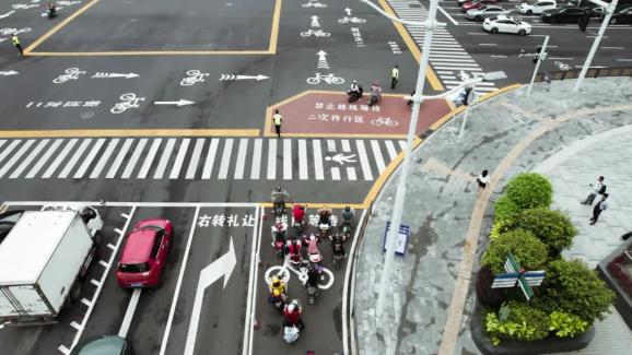 为了规范路口非机动车通行秩序,近日,福州市公安局交通管理局在八一七路东街路口试点设置非机动车通行优化改造试点,配套调整了交通标线、标志和信号灯,实现路口通行“各行其道、严守交规、确保安全、畅通有序”。