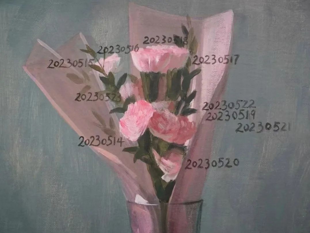 YYYY-MM-DD开始于艺术家薛若哲小女儿的降生之日,并将一直持续。在铺完第一层颜色之后,他每日写生一朵花。
