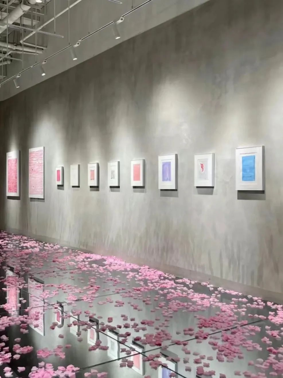 艺术家在现场为我们亲自布置了一片粉红色的花瓣海和一片红色的花瓣海。