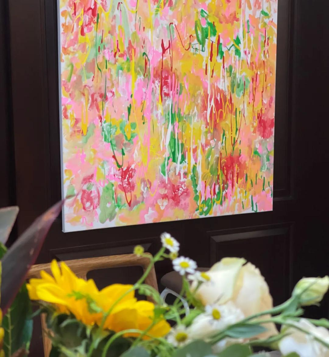 在这个过程中,花会发生变化,绽放或调谢。他如实将它们的变化绘制在画布上,同时底色层保留原样,并不加以覆盖。
