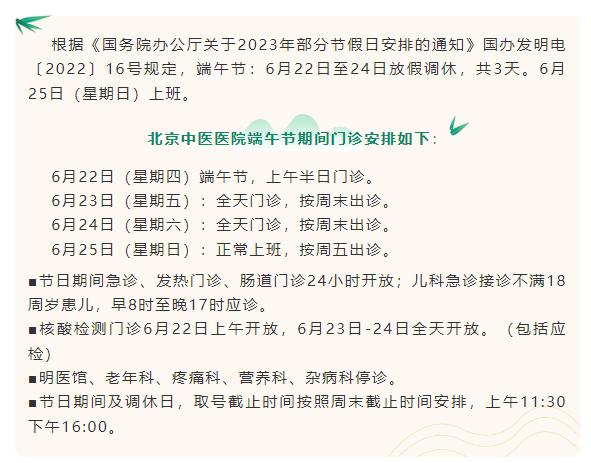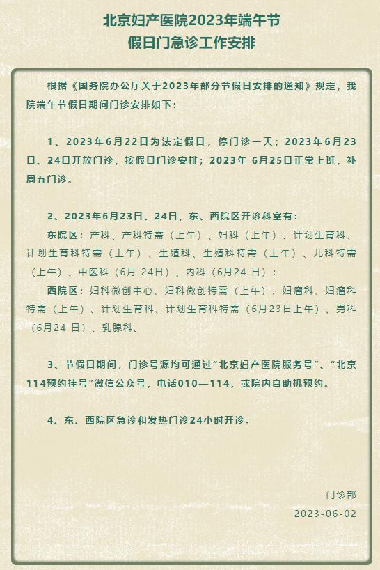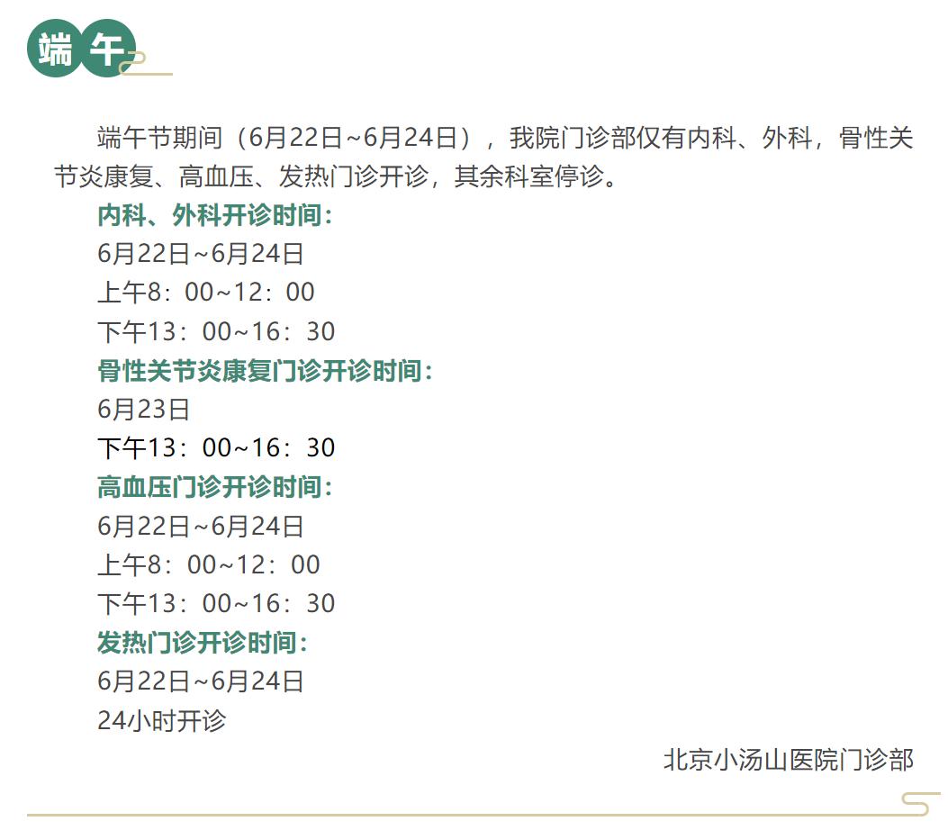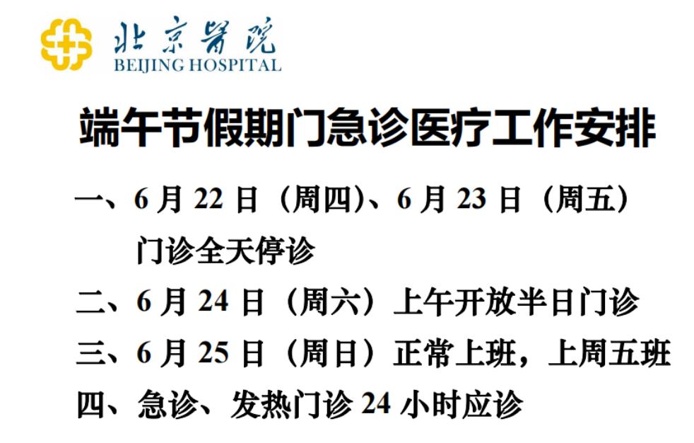 原标题:《收藏!北京多家医院端午节期间门、急诊安排》