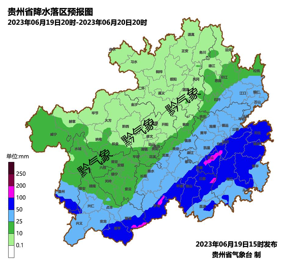 黔西南州、六盘水市南部、安顺市、贵阳市南部、黔南州、黔东南州、遵义市东南部、铜仁市累计雨量普遍在40-90毫米、局部超过150毫米。