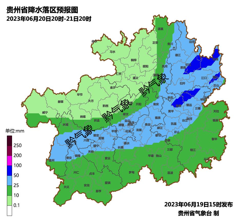 今天下午到明天白天,全省阴天间多云有阵雨或雷雨,其中,铜仁市南部、黔东南州、黔南州中南部、黔西南州南部、六盘水市南部局地有大雨或暴雨,个别乡镇有大暴雨;