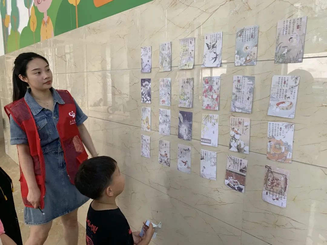 一笔一墨一丹青,一纸一字一发明。小朋友们结合古诗,动手将一个个字块排列摆好,小心翼翼地刷上油墨,一首古诗便清晰地拓印在宣纸上。在等待墨迹自然风干的过程中,每组家庭都积极踊跃的参与改良过的现代版“飞花令”,小朋友们背出一句句带有“关键”字的诗词,踏上诗词之旅,穿行在诗里词间,领略古代诗词大师留给我们的丰厚精神财富!