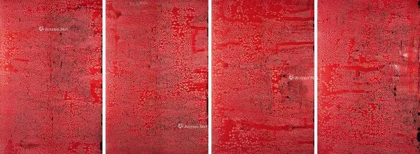 此次呈现的《Forbidden Colors (四联作)》 是艺术家为2019年亚洲首次个展——“解锁”特别创作的作品。抽象画布上所蔓延的血液借用了影视制作中用来逼真模拟伤亡人员所用的液体。他将记忆中战火与鲜血的红,幻化为洒落在画布上的色彩。