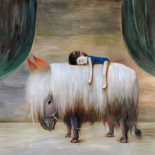1995年在东京Humanité画廊举办的展览上,他笔下那些天真无邪又心事重重的小孩形象大获成功,一跃成为备受瞩目的艺坛新星。此次春拍的作品《但是,没什么让我失望的》即为当时的重要参展作品。此作为艺术家此后漫长的创作生涯奠定了孤独、忧郁的情感与心理基调。