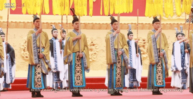 一年春秋两祭,场面十分壮观with twice grand ceremonies a year in Spring and Autumn respectively