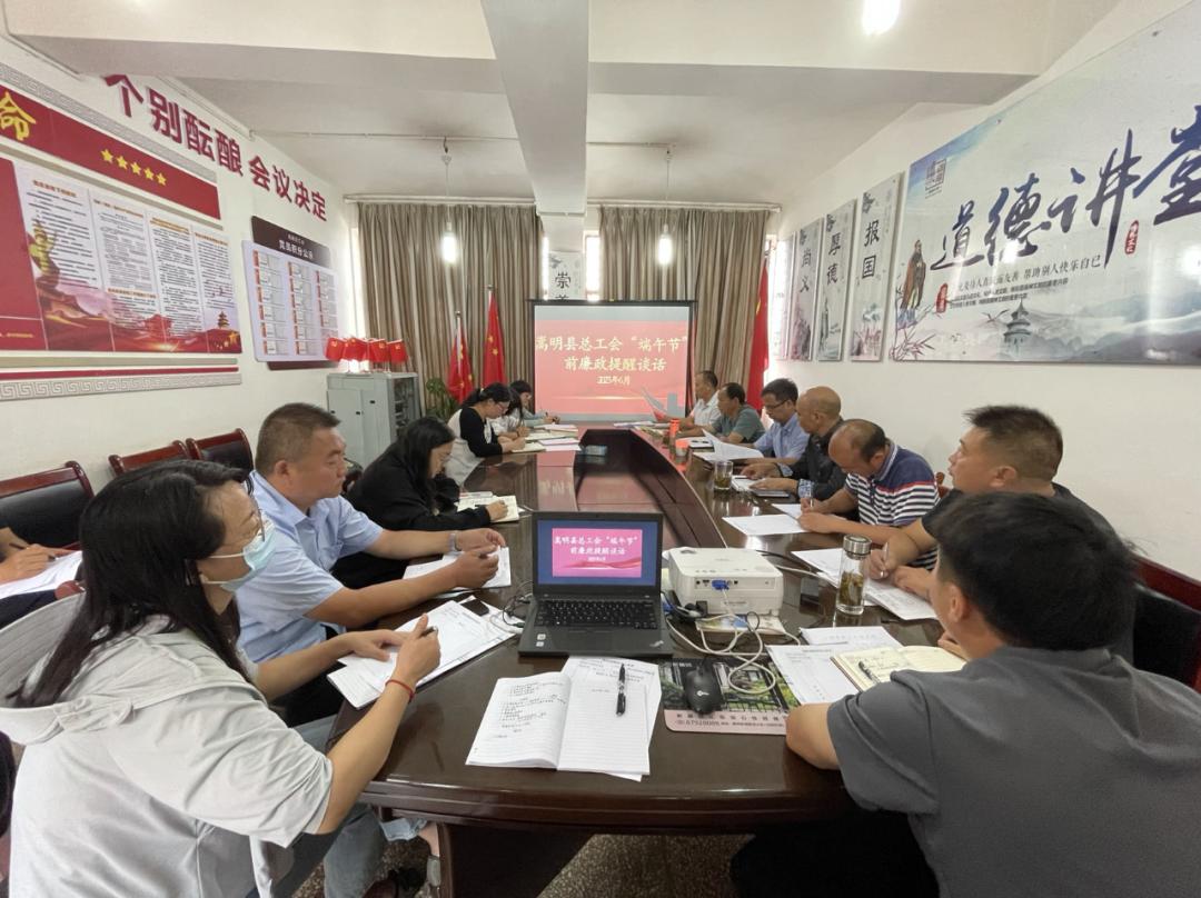 为深入贯彻落实中央八项规定精神及其实施细则要求,严防节日期间“四风”问题反弹回潮,进一步营造风清气正的节日氛围,6月19日,嵩明县总工会开展“端午”节前集体廉政谈话。