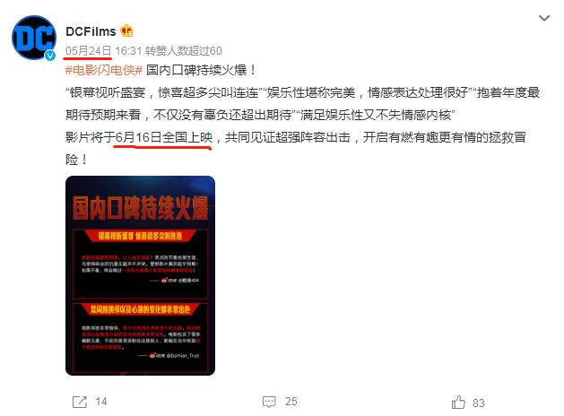 这是华纳旗下DC影业最新电影《闪电侠》映前的高调口号。然而,上映后票房却并不如预期。