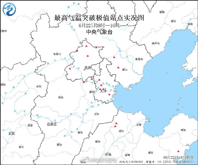 昨日,京津冀及山东气温一路走高多地超过40℃,其中北京汤河口(41.8℃)、天津大港(41.8℃)、河北廊坊(41.6℃)、山东沾化(41.7℃)等17个国家站最高气温突破历史极值。昨日18时,中央气象台发布了今年首个高温橙色预警。
