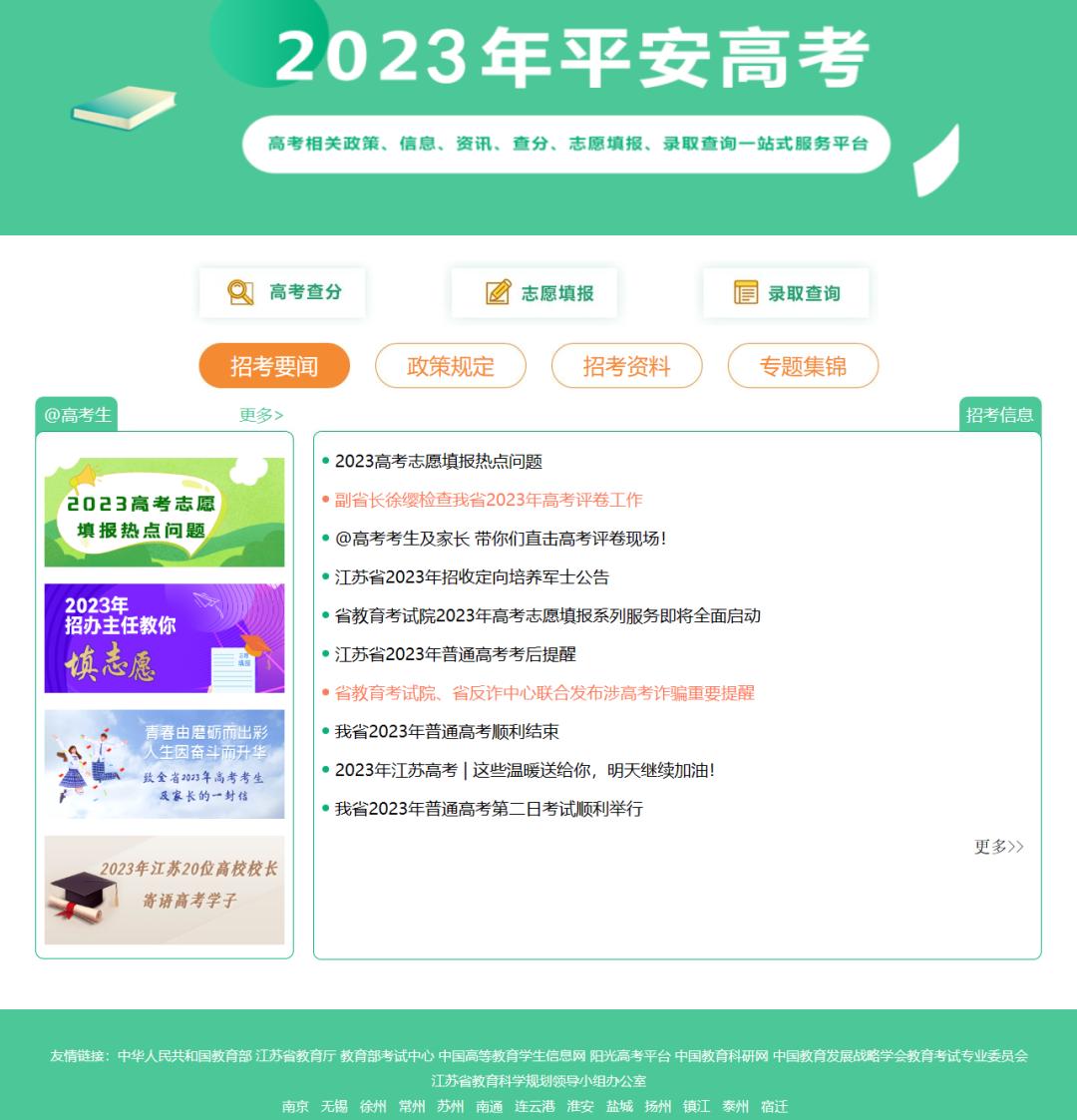 可以通过两种方式进入:1.省教育考试院官网首页;2.“江苏招生考试”公众号底部菜单栏“平安高考”菜单。