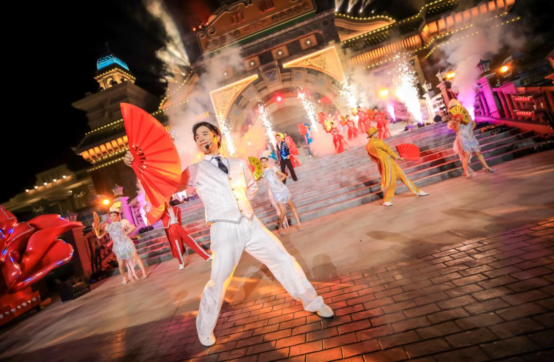 不仅如此,活动期间淮安方特东方欲晓营业时间将延长至21:00,《重回上海滩》、《夏日国潮盛典》等极具民国风情的精彩夜间演艺轮番上演,流光溢彩的烟花水秀点亮仲夏之夜,让游客收获清凉夜游的无限欢乐。