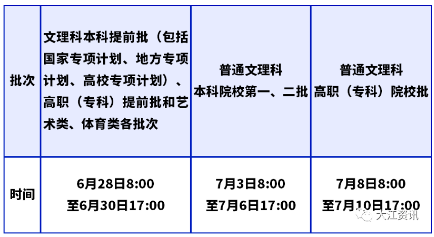 志愿网上填报时间表
