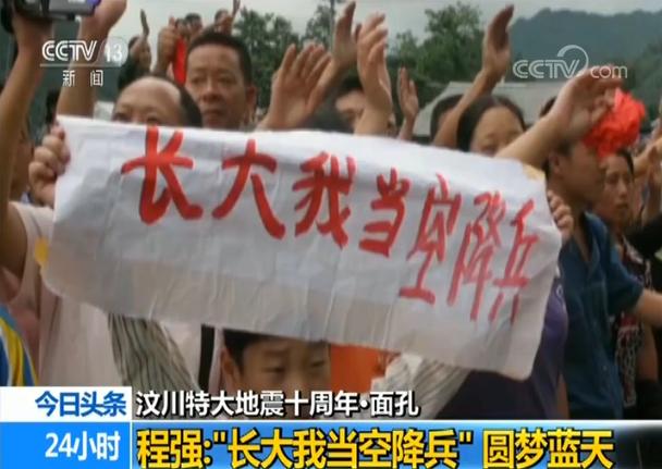 十五年前,汶川地震发生,一名孩子在废墟中被空降兵部队救出,后来为部队送行时高举着牌子,“长大我当空降兵”。十年后,这名孩子成为了空降兵某部“黄继光班”的班长,亲身践行着“为人民服务”的宗旨。这名战士,叫程强。