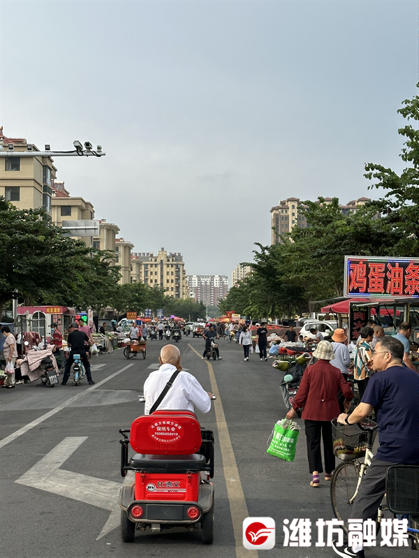 早晨6点,坊子佳乐家对面的兴华路和奥园巷路口以南——凤凰街兴华路早市,拎着油条豆浆的大爷和拖着小拖车的大妈,开始结队出现。
