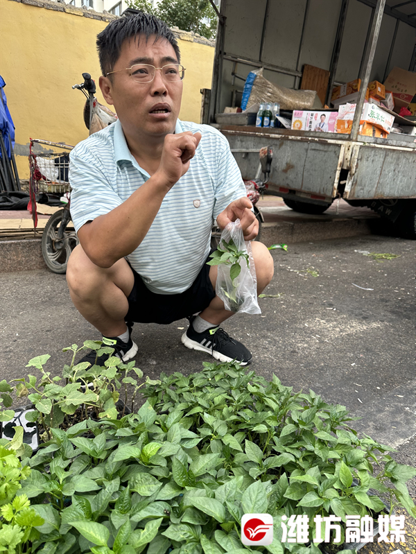 在兴华路早市,我们还遇到了卖菜苗的孔先生,一拃高的青椒苗、芹菜苗、茄子苗根茎健壮。来往市民的“种菜基因”在看到这些幼苗后蠢蠢欲动,忍不住都要问上一嘴。