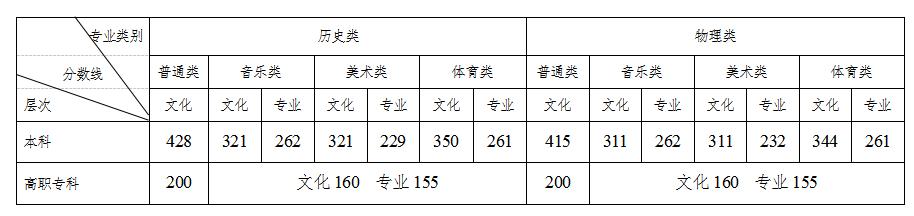 注:1.表中所列艺术类本科分数线适用于安排在平行组(本科提前批和本科批)中录取的艺术院校(专业)。