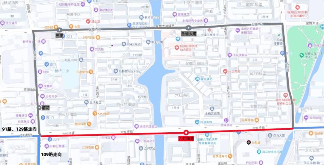 临时撤销站点:六虹锦苑、前花、三浃、金蟾大道