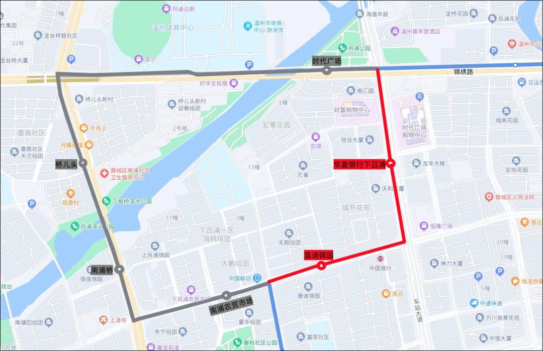 临时增加站点:华夏银行下吕浦、温迪锦园