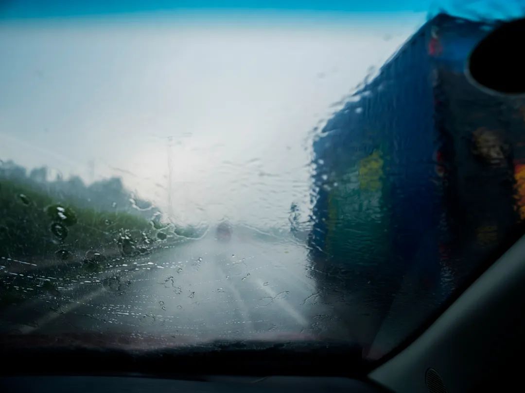 ●6月正值东莞雨季,唐鹏在高速公路行驶时遇到暴雨。