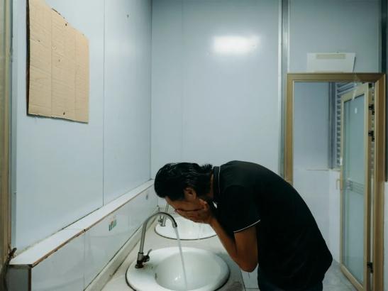●衣服一下水,水池里就变了颜色。实在困乏的时候,唐鹏也允许自己每月去两次几十块钱一晚的小旅馆洗衣服,睡上一觉,第二天继续跑车。