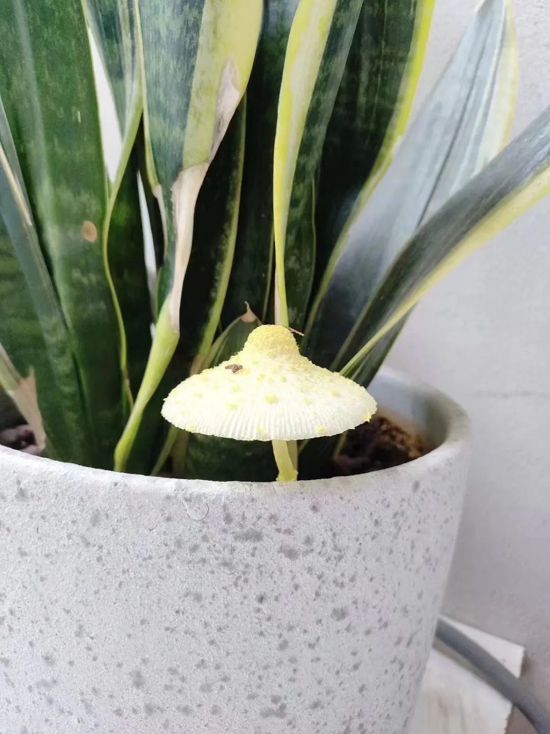 ▲网友葛女士晒图:养在办公室的盆栽,突然冒出“白伞伞”