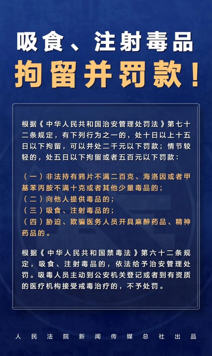 今天是6·26国际禁毒日,对于毒品犯罪我国都有哪些法律规定?吸毒、种植毒品、走私贩毒,都要受到哪些刑罚?