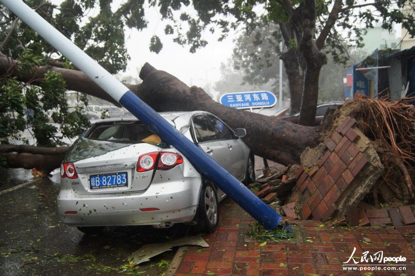 二、台风的危害(1)强风:台风是一个巨大的能量库,其风速都在17米/秒以上,甚至在60米/秒以上。据测,当风力达到12级时,垂直于风向平面上每平方米风压可达230公斤。