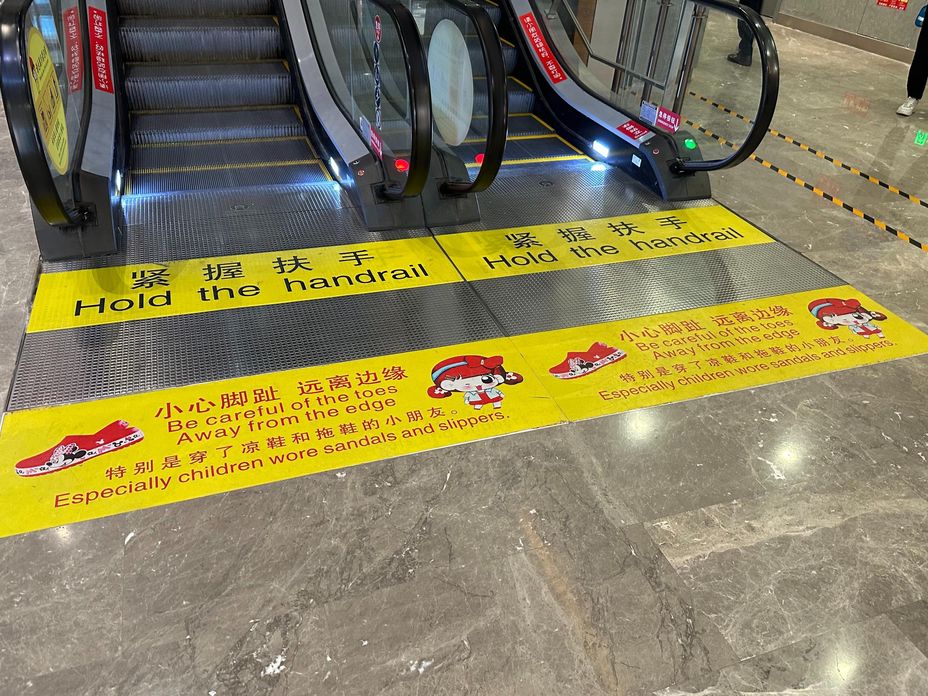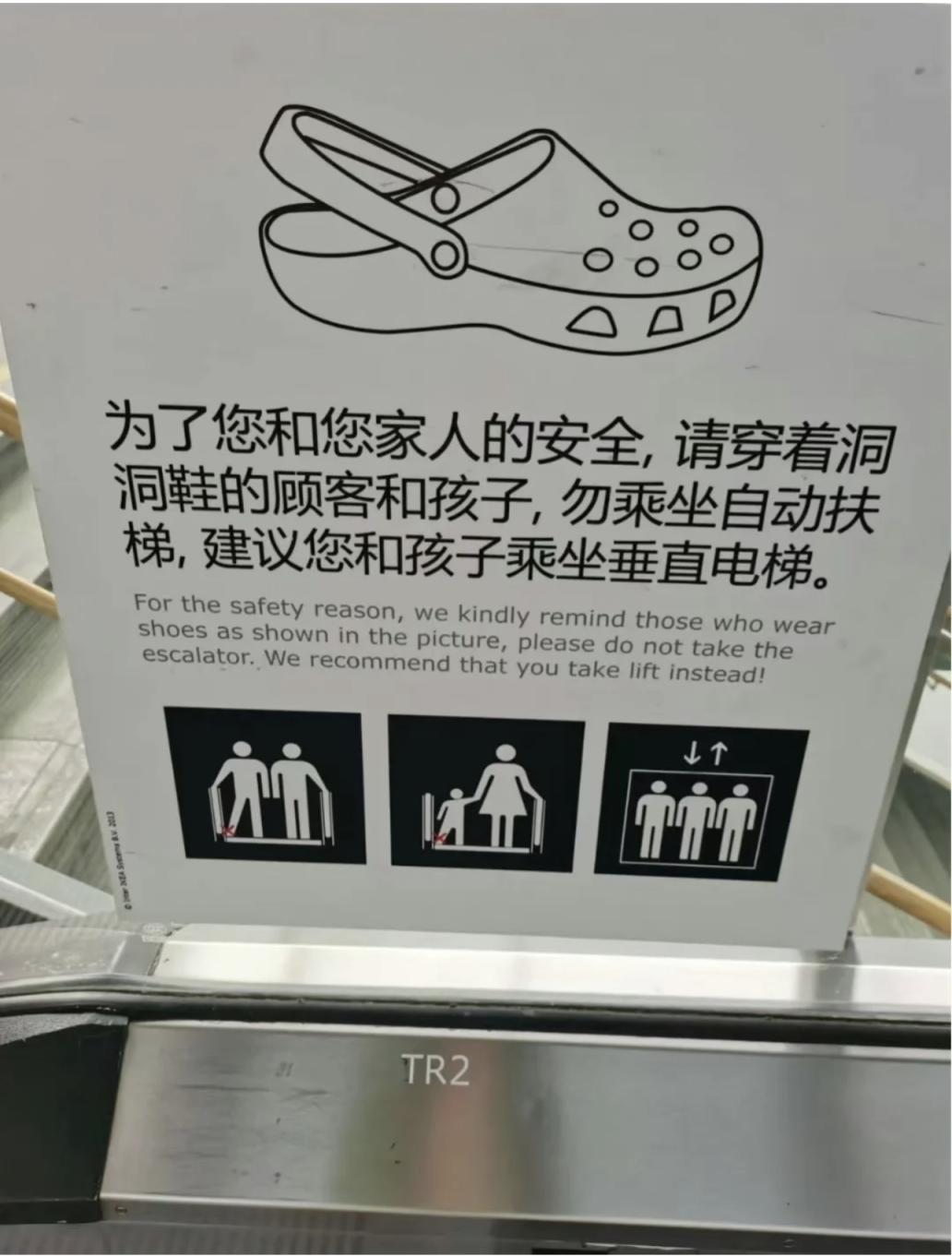 北京多处公共场所贴出警示:穿洞洞鞋乘扶梯易受伤!