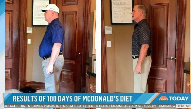 最近国外出了一个新闻,说有位叫 Kevin Maginnis 的男子, 57 岁 200 多斤,连续 100 天只吃麦当劳,居然瘦了 52 斤,连啤酒肚都没了!