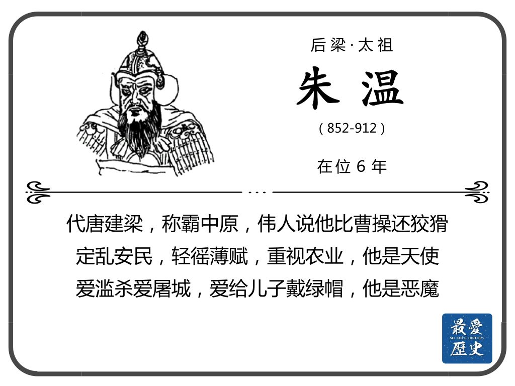 ▲ 朱温(852-912)画像。然而,后梁虽立,却也一直没能压制河东。李克用死后,李存勖子承父业,继续与朱温争锋。对李存勖,朱温曾评价说: