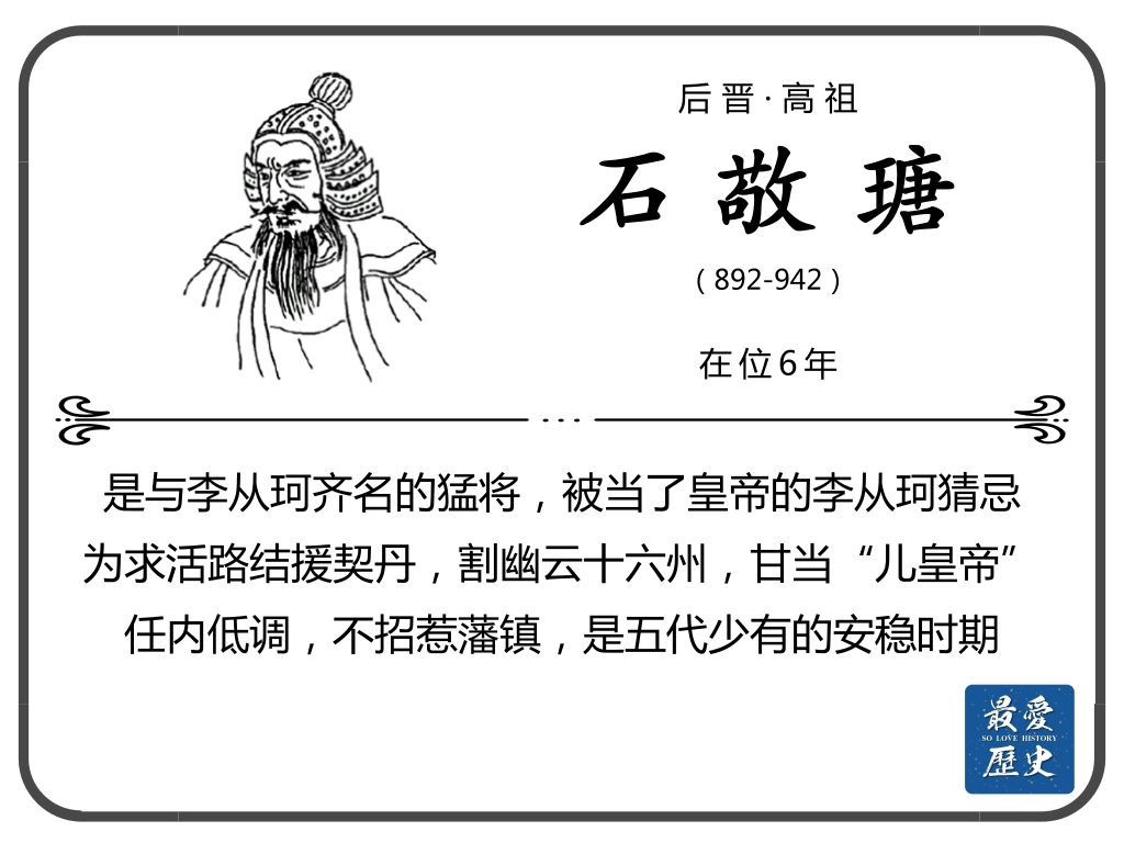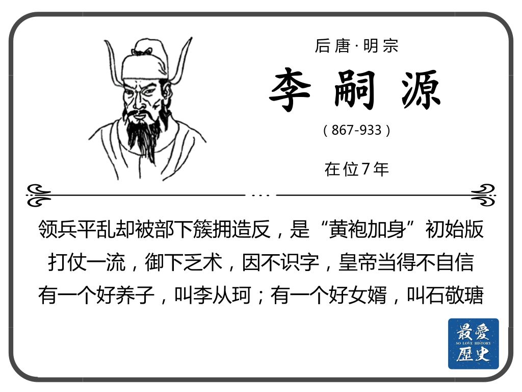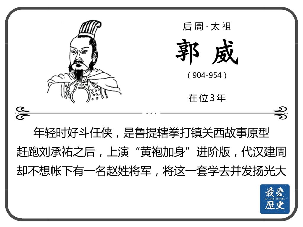 后晋的建立者石敬瑭,是后唐明宗李嗣源的女婿;后汉的建立者刘知远,是后晋石敬瑭的心腹;后周的建立者郭威,又是刘知远的心腹;直到后来的赵匡胤,亦是在郭威帐下崭露头角的。