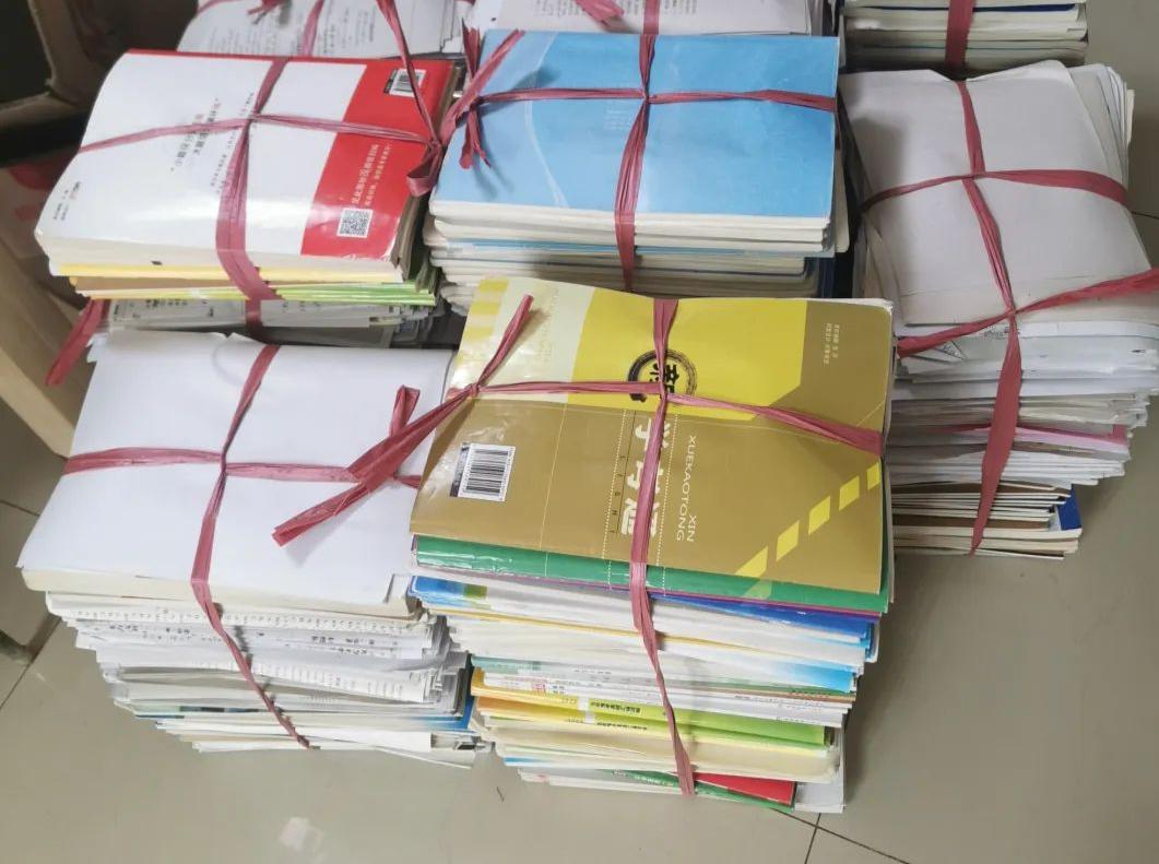△双胞胎兄弟申致申泽高中三年的学习资料(不含课本)共220斤。此外
