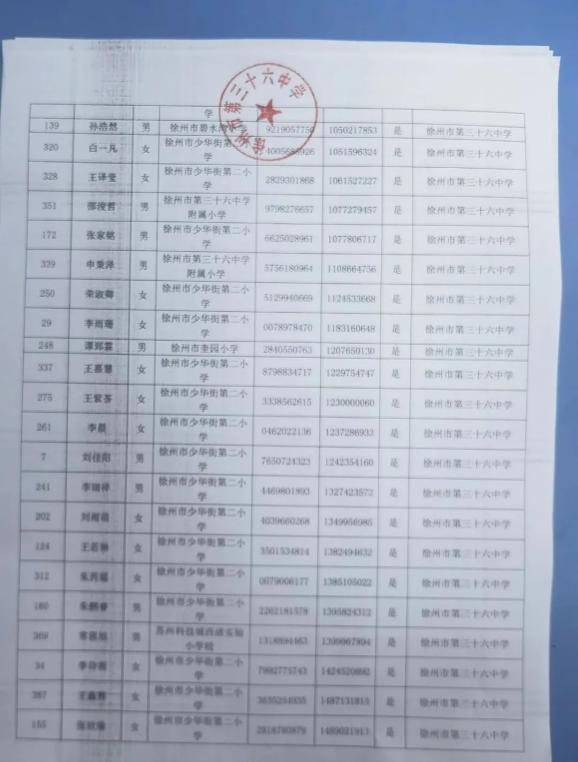 徐州市第三十四中学电脑派位名单请登录学校官网查看