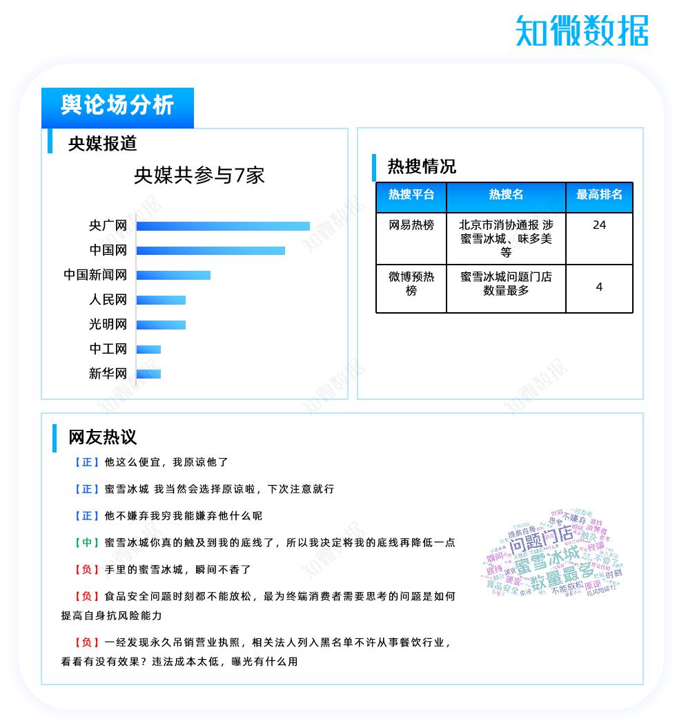 6月16日,北京市消费者协会通报了最新一期(5月31日-6月15日)全市食品安全大检查结果,问题餐饮企业涉及蜜雪冰城、味多美、张亮麻辣烫等连锁餐饮门店。其中,蜜雪冰城问题门店数量最多。话题#蜜雪冰城问题门店数量最多#登上微博预热榜。