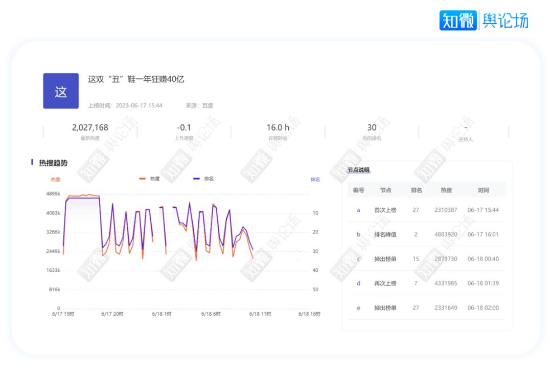 结语:本周,恰逢端午假期,“端午经济”促进消费活力升级,推动“体育+旅游”消费融合发展。周期内,运动健身赛道头部品牌营销活动较多,其中,李宁发布2024春夏潮流新品、时代少年团正式成为李宁运动青春产品全球代言人等事件促使品牌声量一度飙升。