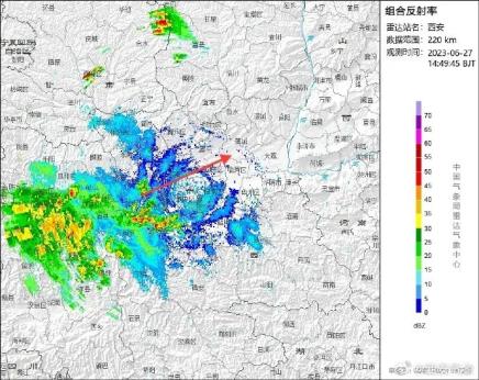 西安市气象台2023年6月27日12时50分发布重要天气报告:据最新气象资料分析,27日夜间-28日白天我市降水过程较前一时次预报有明显调整,总体降水强度增强。