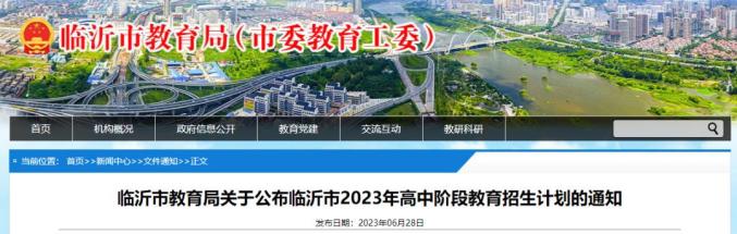原标题:《临沂2023年高中阶段教育招生计划公布!一中、二中、四中……》