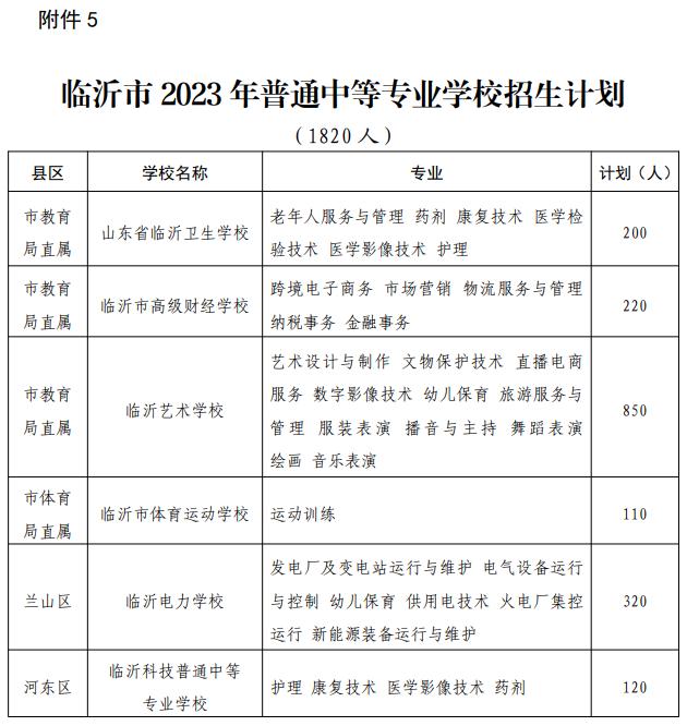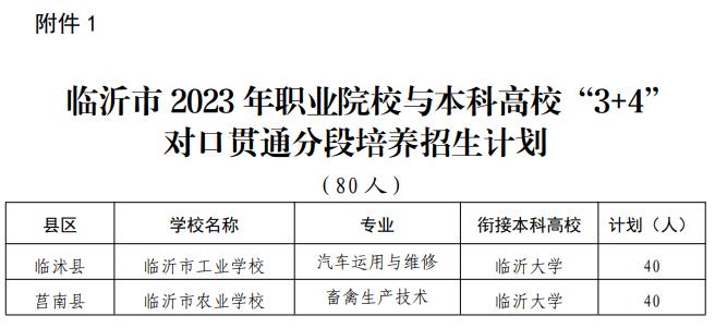 1.临沂市2023年职业院校与本科高校“3+4”对口贯通分段培养招生计划