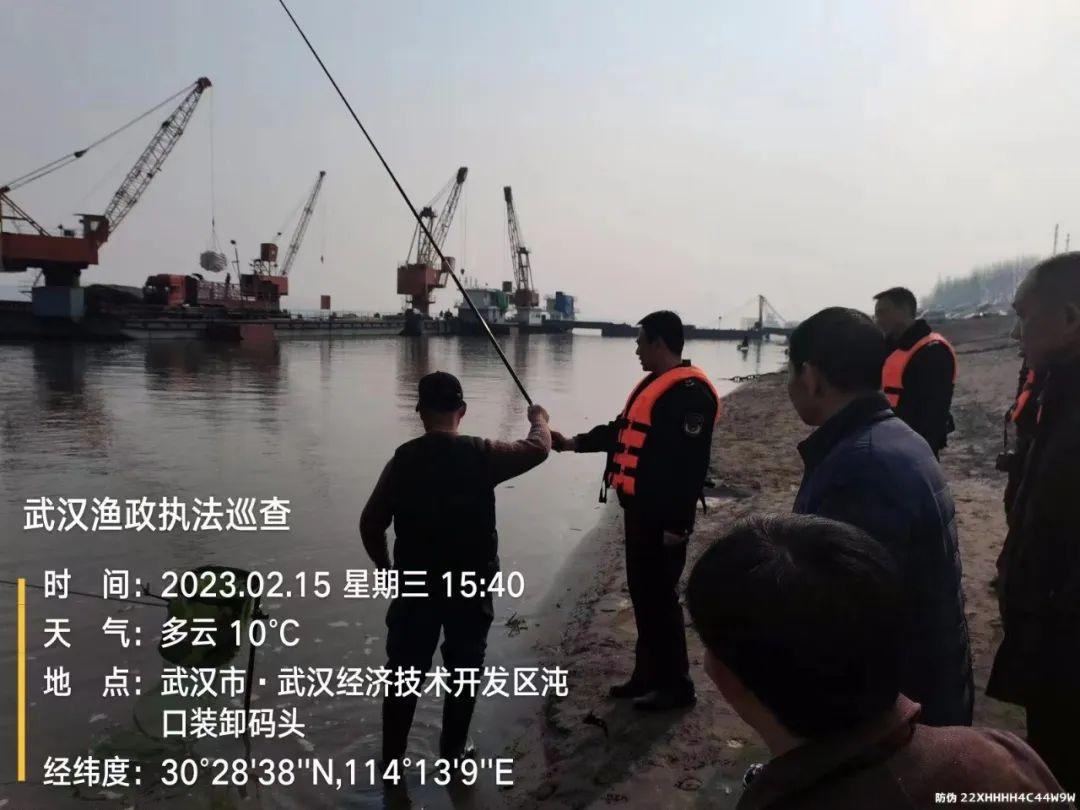 2022年1月16日14时,武汉渔政天网系统发现,在长江汉南段东荆河河口水域有人正在非法捕捞。长航公安武汉分局联合汉南区渔政部门紧急出动,将正在使用禁用渔具(钩刺耙刺)进行非法捕捞的李某、程某抓获。现场查获渔获物白鲢2尾,鱼竿2根、钩刺耙刺(三本钩)10个、钩刺耙刺(蝴蝶钩)20个。警方将现场查获的渔获物放生,犯罪工具予以扣押。随后,警方依法对该案立案侦查。